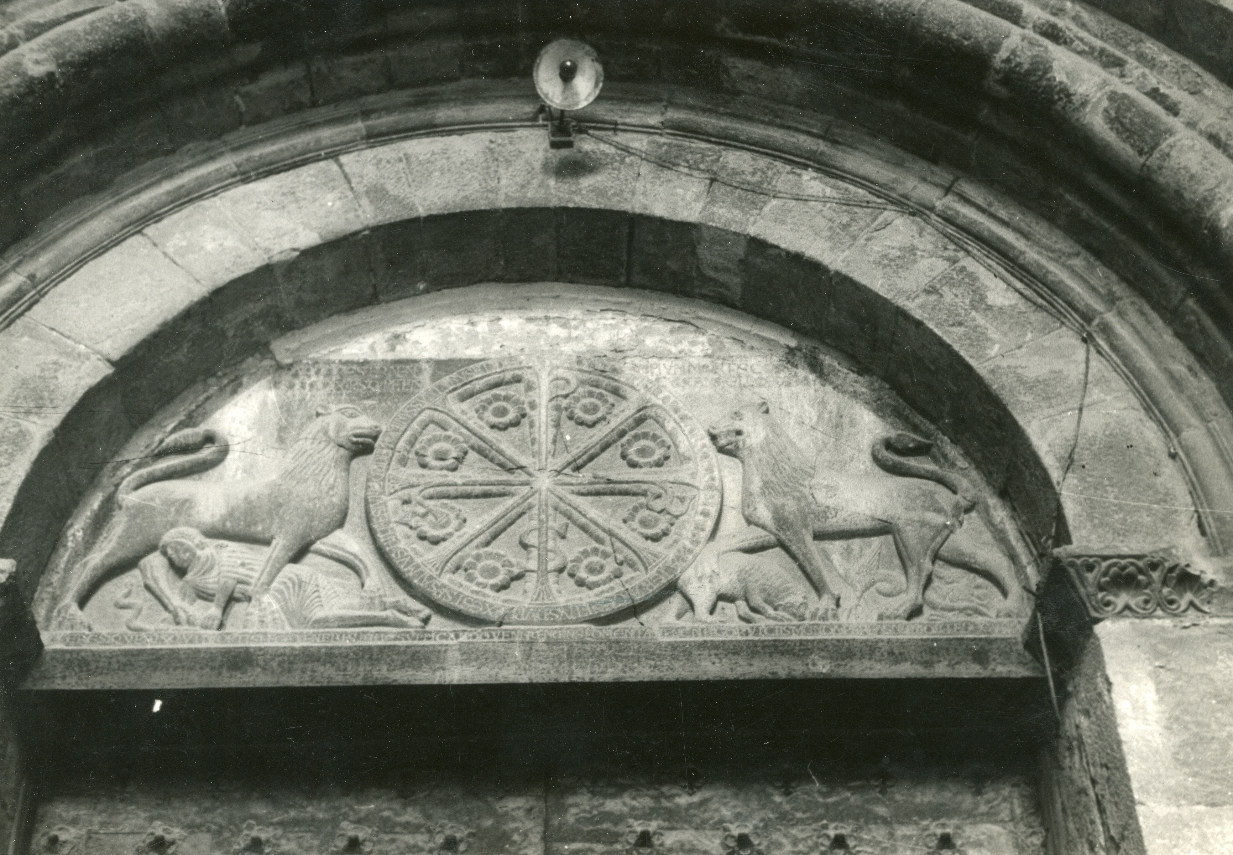 Fig. 8 Jaca (Espagne), cathédrale, tympan. Cliché : CESCM, photothèque