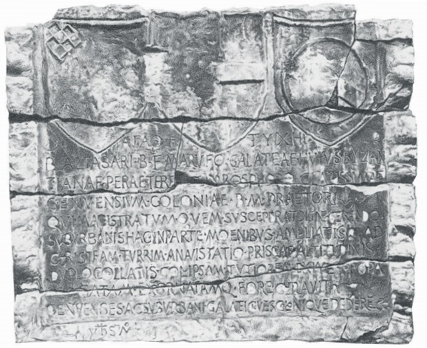 - > Fig. 4d: Construction slab with inscription dated 20 September 1446 that was documented on the coast of the Lagirio suburb (Belgrano, Documenti, pl. 19)