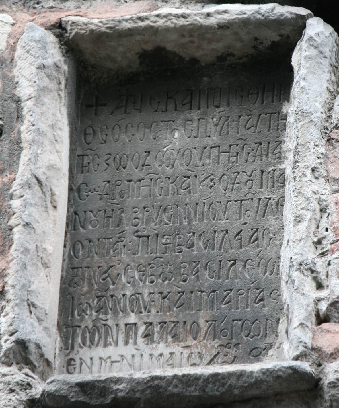 223) 1432-1433. Inscription copiée par l’abbé Domenico Sestini en 1783 sans grande précision quant à sa localisation. Il longe le rempart terrestre et note près de Yeni Kapı : « De temps en temps, de ce côté aussi, on peut observer des inscriptions grecques ; parmi les nombreuses qui sont endommagées par le temps, j'ai recopié celle-ci, qui se trouve sur une tour24. » Il copie « une inscription quasi identique dans une église en ruine située à côté du monastère de la Panaghia sur une des îles des princes (Büyükada)25. »